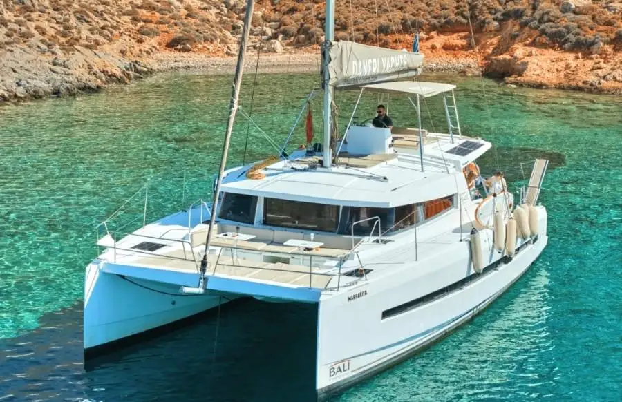 Experience a premium catamaran cruise from Hersonissos to Dia Island or Saint George Bay (sunset tour). Sail in comfort on a luxury catamaran, enjoy exciting water activities, unlimited drinks, and a freshly prepared Mediterranean lunch. Ideal for couples, families, and travelers seeking an unforgettable Crete sailing experience.